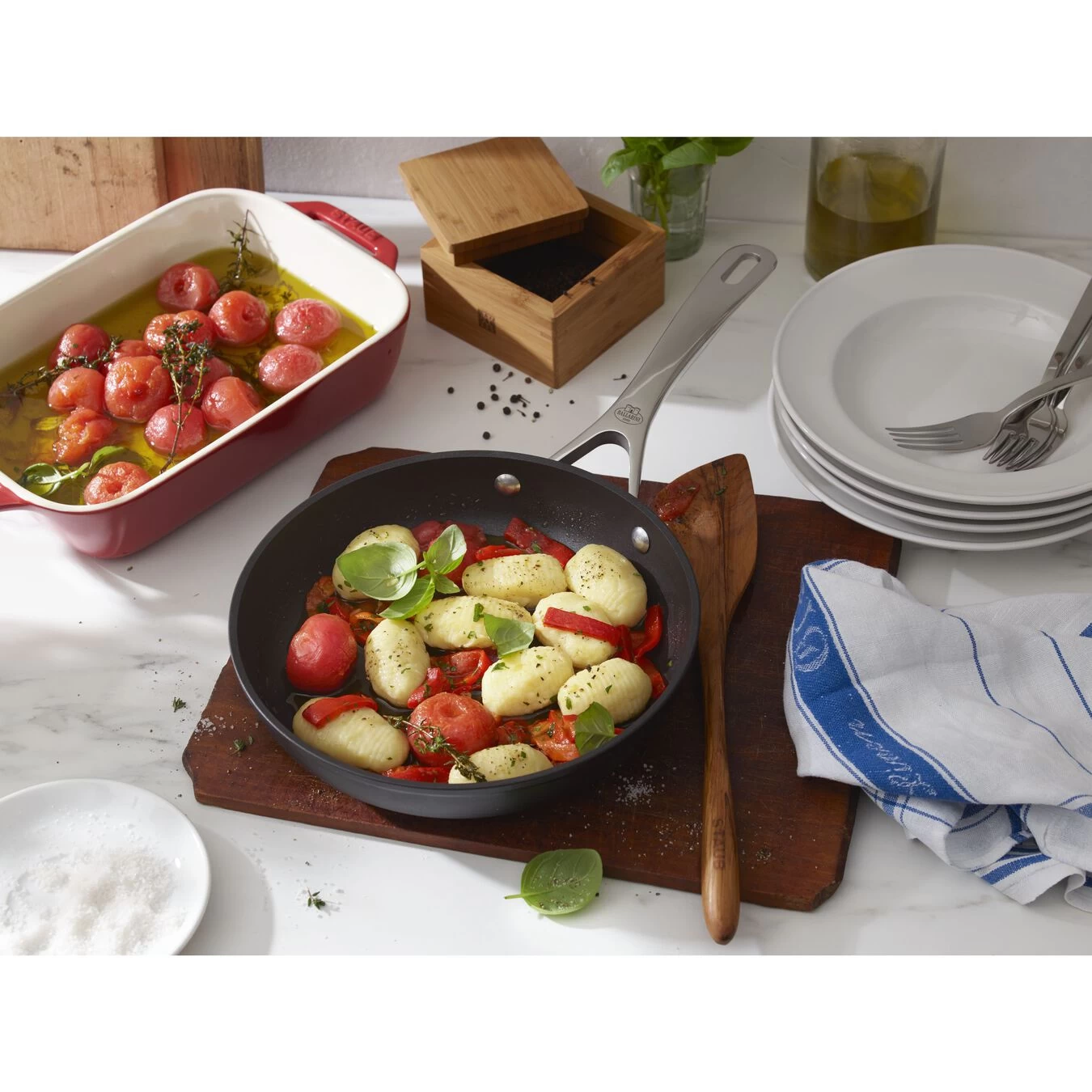 - Manico ergonomico in acciaio inox: estremamente stabile grazie alla rivettatura in acciaio inox, resistente al calore e adatto anche al forno fino a 250 °C