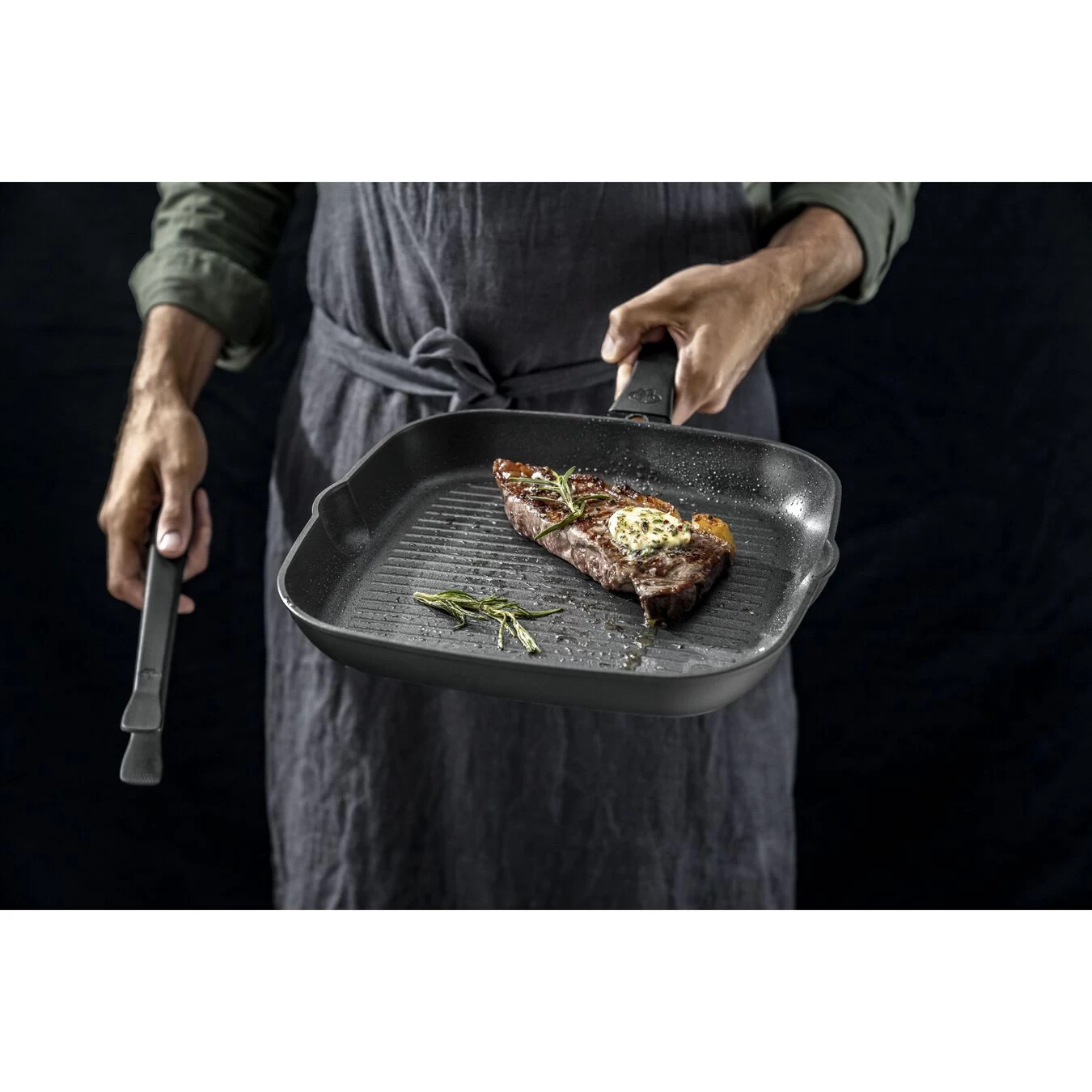 Le pinze da cucina in silicone della linea BALLARINI Nero aiutano a preparare e servire piatti raffinati. Con la pinza potete anche girare le bistecche in padella senza graffiare il rivestimento. Il silicone di alta qualità è resistente al calore fino a 230 °C e lavabile in lavastoviglie. Le pinze da cucina ergonomiche sono state progettate da Matteo Thun & Antonio Rodriguez di Milano.