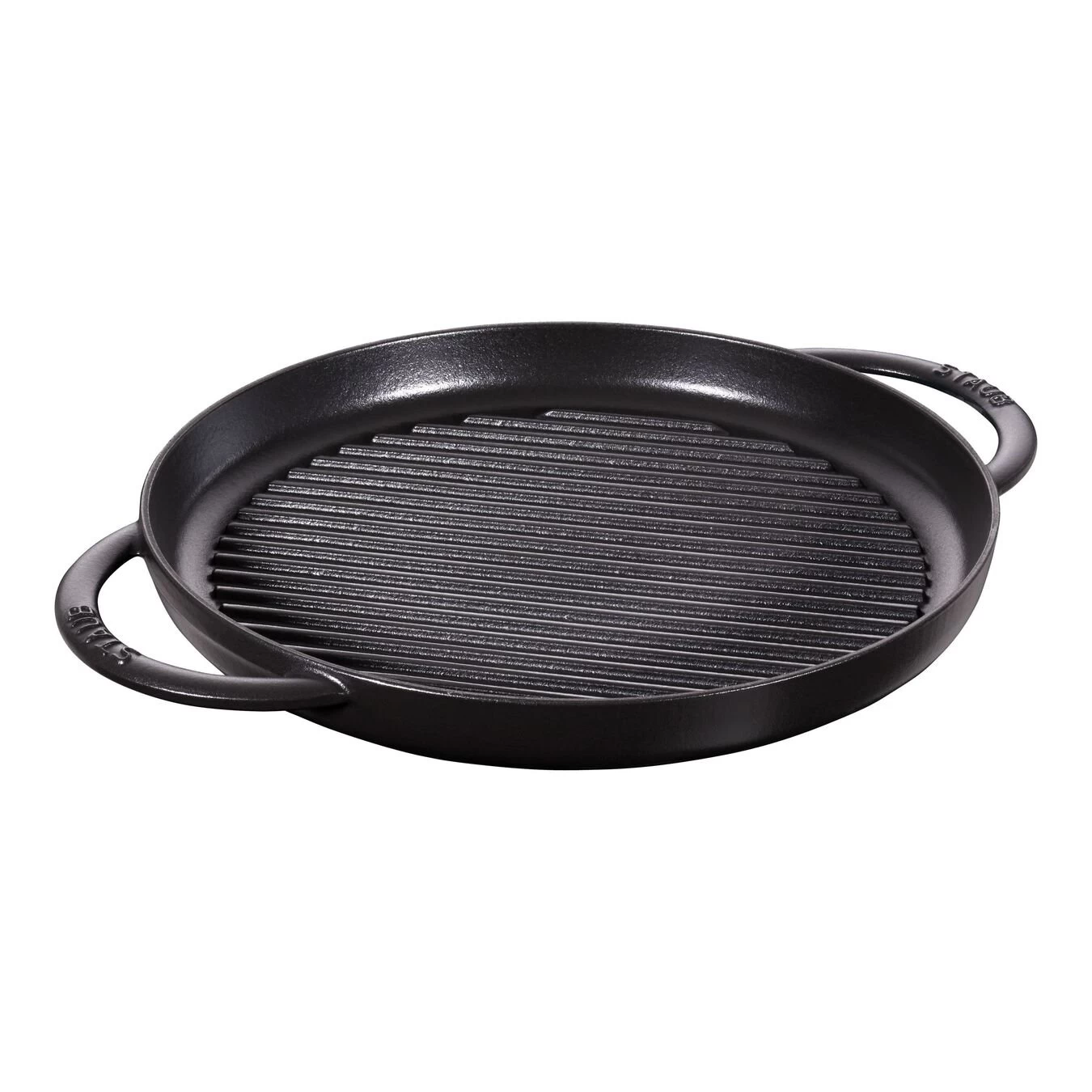 Il grill della serie Grill è perfetto per cuocere la carne. È fatto di ghisa, che lo rende particolarmente adatto a scottare i cibi, perché può essere riscaldato fino ad alte temperature e distribuisce uniformemente il calore su tutta la superficie, così da consentire di dorare e friggere più pezzi di carne in modo uniforme. Lo smalto nero sulla superficie interna produce un eccellente effetto di frittura perché esalta il sapore naturale degli ingredienti. Lo smalto è un materiale robusto che vi consente di preparare tante succose bistecche e altre prelibatezze. Il grill ha un diametro di 30 cm. È largo 39 cm, compresi i manici, e ha un’altezza di 3,5 cm. Va bene anche per servire i cibi in tavola grazie ai manici di cui dispone. Può essere utilizzato su tutti i tipi di piano cottura, inclusi quelli a induzione. Il grill è dotato di scanalature alla base che imprimono sulla carne i tipici segni del barbecue. Inoltre, il grasso in eccesso scorre tra le scanalature in modo che la carne possa mantenere un basso contenuto di grassi e calorie. Utilizzando una grill Staub potete procedere spediti e concedervi un pezzo di carne in più, che ha lo stesso gusto e lo stesso aspetto di quando è cotta alla griglia ed è altrettanto sana e accuratamente preparata.