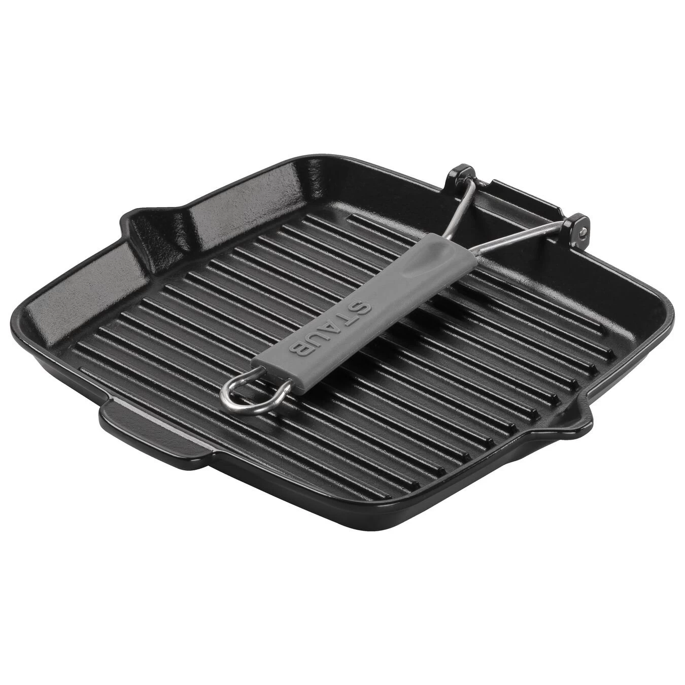 Con la pratica bistecchiera STAUB, le grigliate sono possibili anche in casa. Bistecche succose, hamburger saporiti, verdure grigliate e pesce ottengono l’inconfondibile sapore tipico della griglia grazie al corpo in ghisa nera che si riscalda velocemente e distribuisce e conserva il calore in modo ottimale. La struttura a scanalature del fondo della bistecchiera garantisce, inoltre, anche i segni tipici della griglia, mentre fa sì che le verdure cuociano facilmente grazie al calore indiretto che si crea tra le scanalature. Il manico in silicone è termoisolante e quindi protegge dalle scottature e, allo stesso tempo, rende la padella in ghisa facile da maneggiare sul piano cottura e per trasferire il cibo nel piatto da portata. Utilizzando un sottopentola adatto, la bistecchiera serve anche per servire in tavola con stile. Grazie al manico pieghevole e all’occhiello per appenderla, si può riporre facilmente per risparmiare spazio quando non viene utilizzata.
