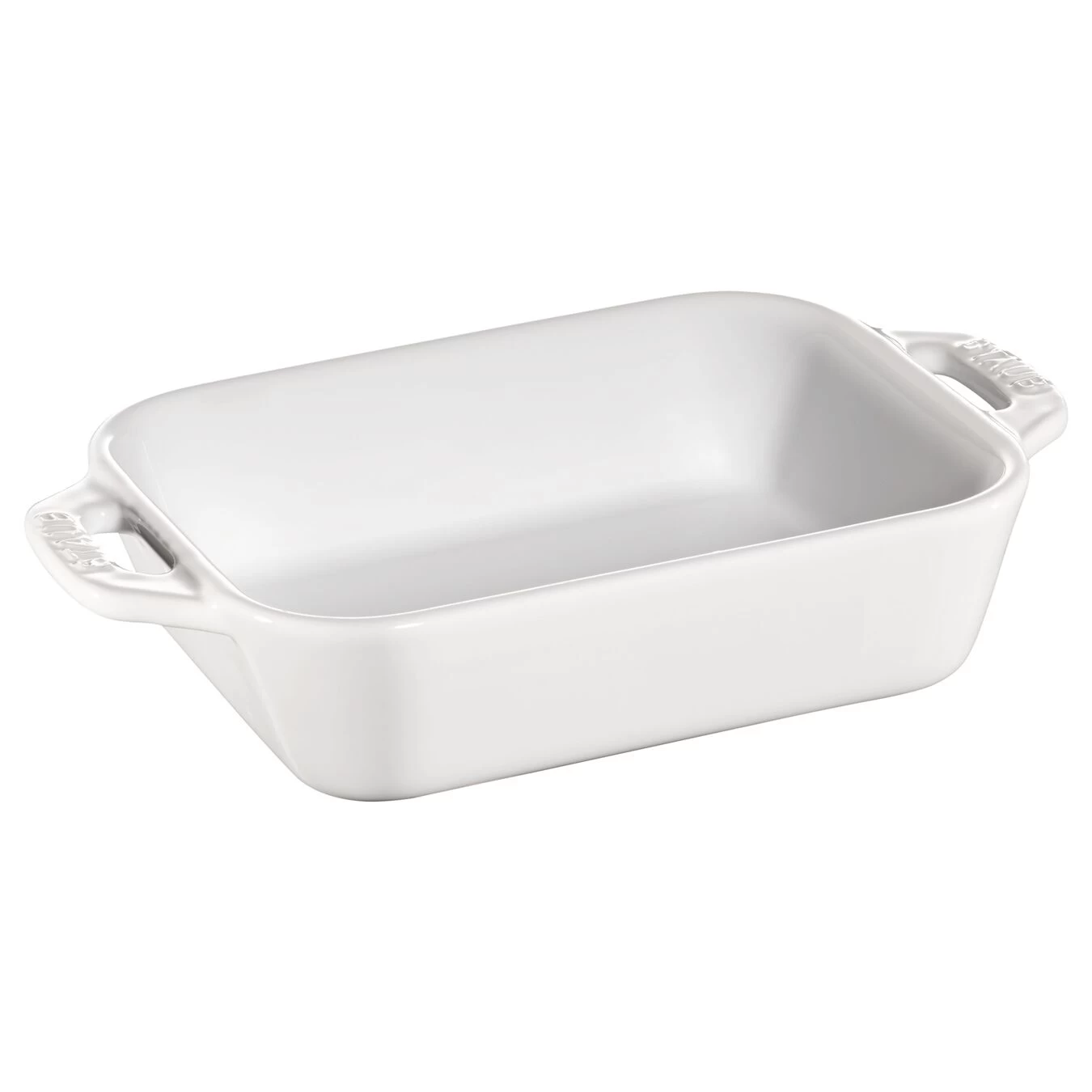 La pirofila rettangolare Staub è ideale anche quando preparate piccole quantità di abbondanti pietanze al gratin o gustosi dessert. Le sue dimensioni di 14 cm x 11 cm sono ottime per preparare un piatto per una persona. La sua finitura bianca la rende attraente ed elegante. La pirofila può essere impilata su altre pirofile per riporla in modo compatto. I manici ergonomici della pirofila facilitano l’uso. Con questa pirofila della serie Staub Ceramica potrete servire piccoli piatti cotti al forno, con stile.