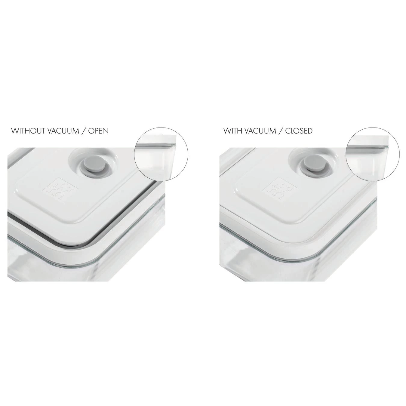 - Coperchio sottovuoto con tecnologia innovativa a doppia chiusura e funzione di indicazione del vuoto: se il coperchio interno viene abbassato, la scatola è sotto vuoto